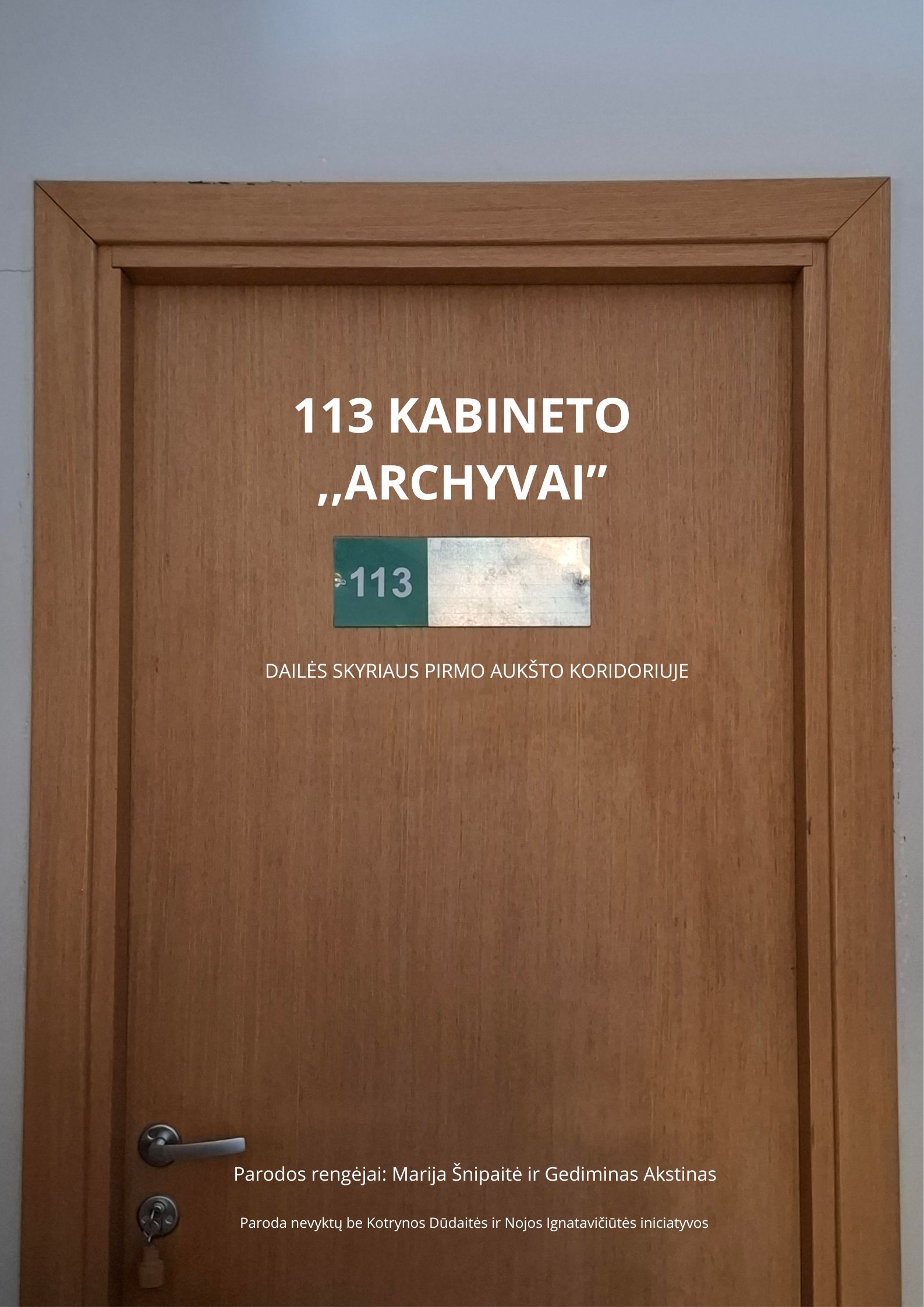 „113 kabineto archyvai“ – spontaniškai dailės skyriaus pirmame aukšte atsiradusi paroda. Jos atsiradimo pretekstu tapo kelių dvyliktokų sumanymas šiame kabinete įrengti fotolaboratoriją.