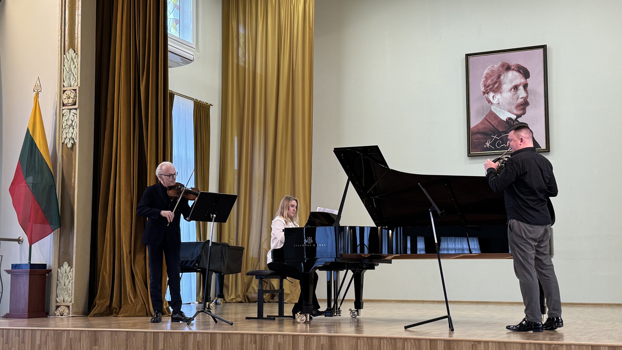 - Gediminas Abaris (valtorna), Artūras Šilalė (smuikas) ir Emilija Topichaitė (fortepijonas)
