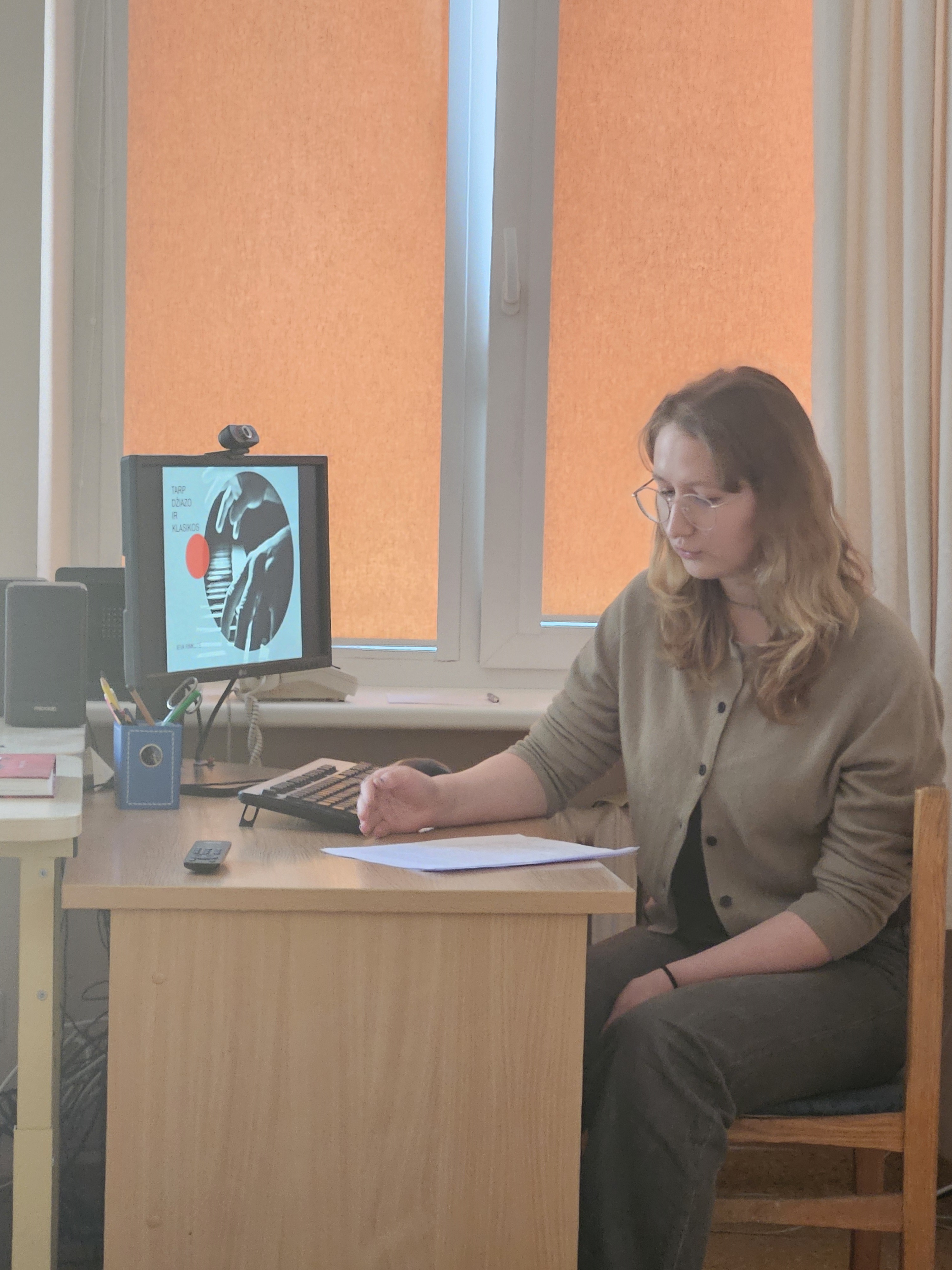 Ieva pristatė temą „Tarp džiazo ir klasikos“, primindama džiazo atsiradimo istoriją ir vėlesnę jo plėtotę, sąveiką su akademine muzika. Stabtelėta prie G. Gershwino, H. Scott, J. Loussier ir K. Jarretto. Jono temos formuluotė - „Metai po Čiurlionio jubiliejaus. ESKIZAI“. Praeina šventiniai jubiliejai, o kas išlieka kaip nuolat ir pastoviai plytintis dvasinis pamatas? Kuo ir kaip Čiurlionis paveikia mokykloje besimokančius? Kaip paveikė Joną Maknicką, kuris prieš metus mokyklos Lenktojoje galerijoje parengė parodą ESKIZAI? Į šiuos klausimus buvo atitinkamai atsakyta, referatą lydėjo labai iškalbingos skaidrės.