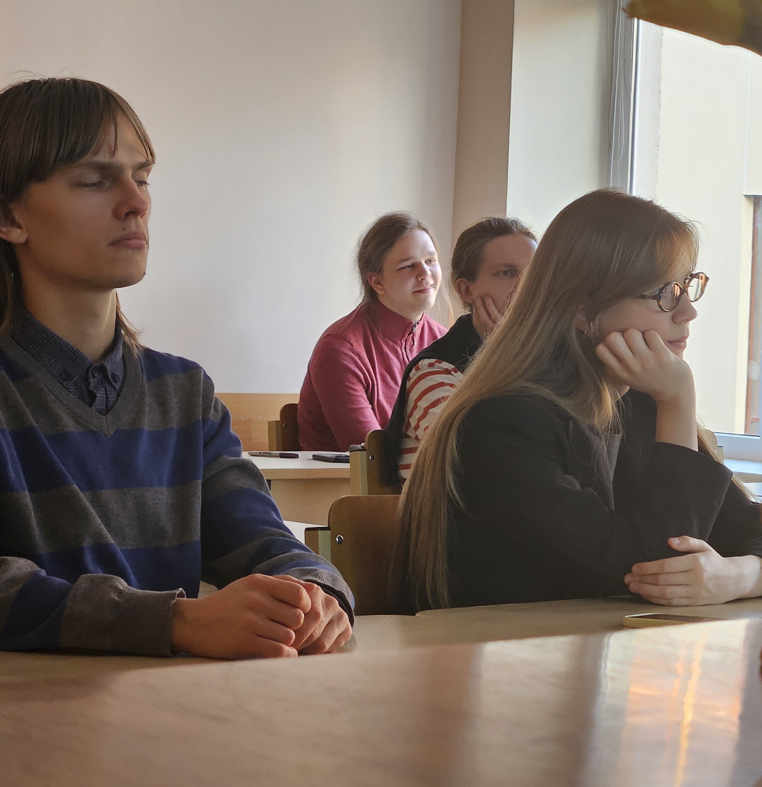 Be galo malonu, kad penktadienio vakarą į Referatų popietę susirinko nemažas būrelis garbingų klausytojų – mokytojas Algirdas Kiškis, Giedriaus Krukausko senelis, keletas 12-okų, 10-okų ir 8-okė, užsimezgė ir trumpa diskusija. Apskritai, stebėtina, kad šis vakaras įvyko, kuomet yra priartėję labai sudėtingas egzaminų metas 12-okams, kuomet jau beldžiasi Velykų atostogos.