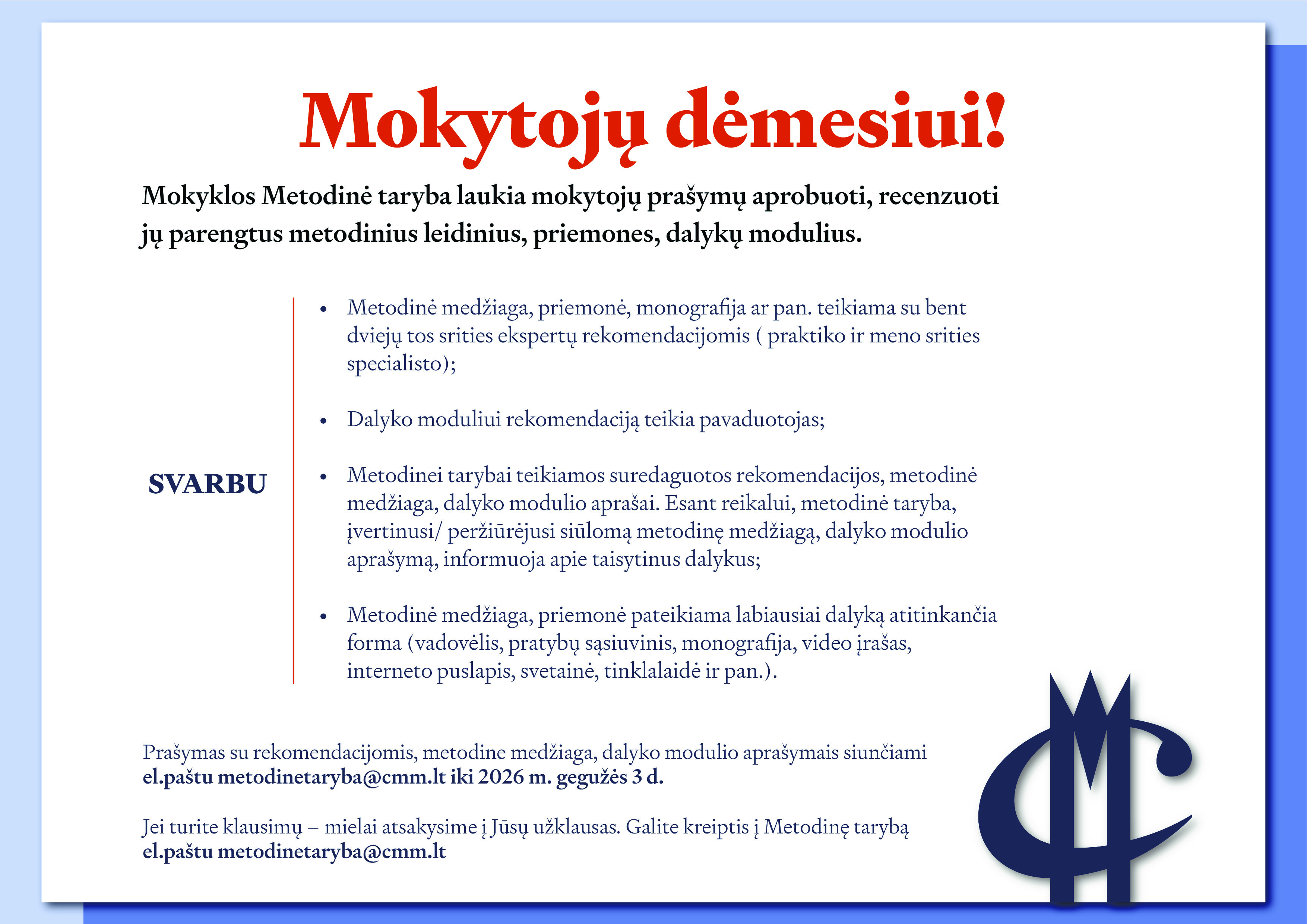 Mokyklos Metodinė taryba laukia mokytojų prašymų aprobuoti, recenzuoti jų parengtus metodinius leidinius, priemones ir dalykų modulius