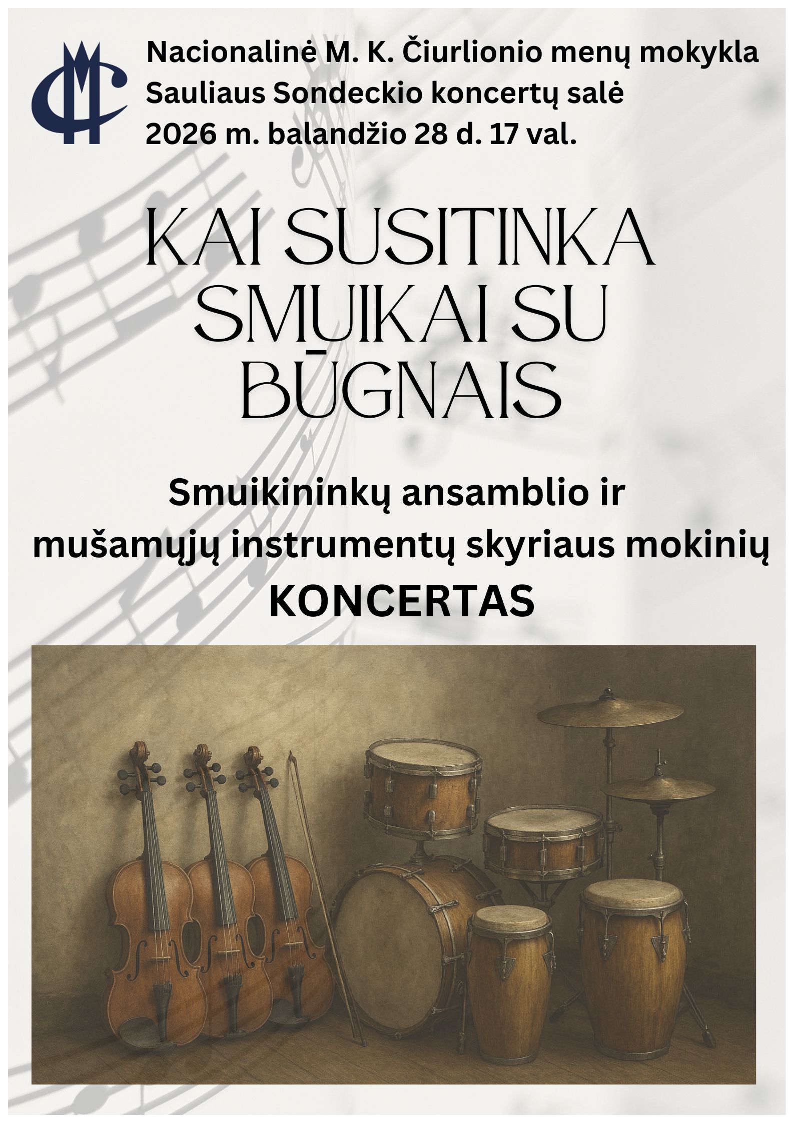 5-7 klasių smuikininkų ansamblis, Kamilė Bakytė ir Aleksandras Povilas Jakutis (perkusija)